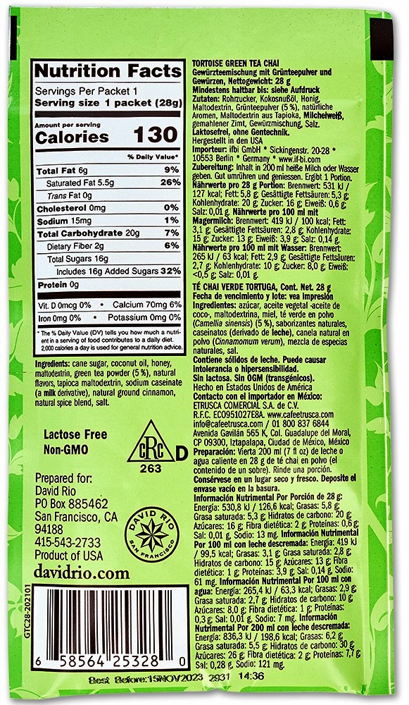 Alle David Rio Chais sind Koscher-zertifiziert. Sie enthalten weder gehärtete Pflanzenöle, noch Fette und sind gluten- und lactosefrei. David Rio Chai punktet mit hervorragender Qualität, unverwechselbarem Aroma und perfektem Design. Die beliebten David Rio Chai Sorten wurden nach bedrohten Tierarten benannt.