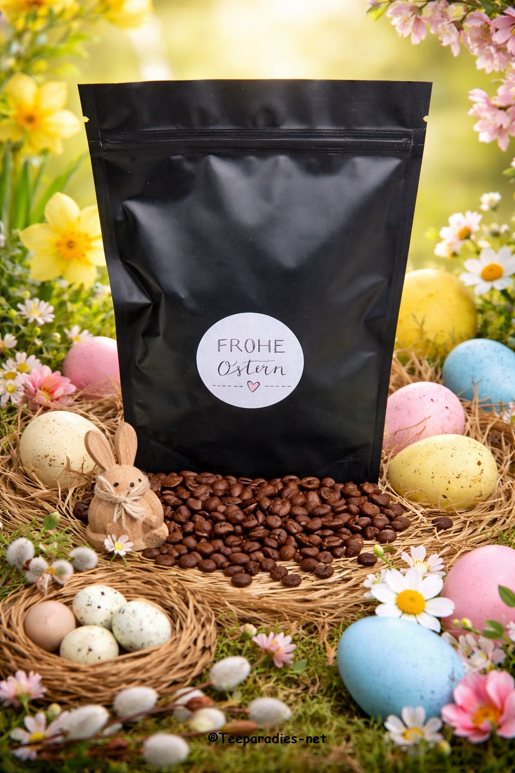 Kaffee Ostertütchen mit „Ostersticker Frohe Ostern“ 50 g. Aromatisierter Kaffee