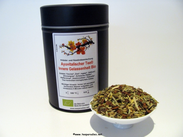 Teeparadies-net Editionstee „Wellness“ Ayuvitalischer Tee®Innere Gelassenheit Bio 100 g. in Dose
