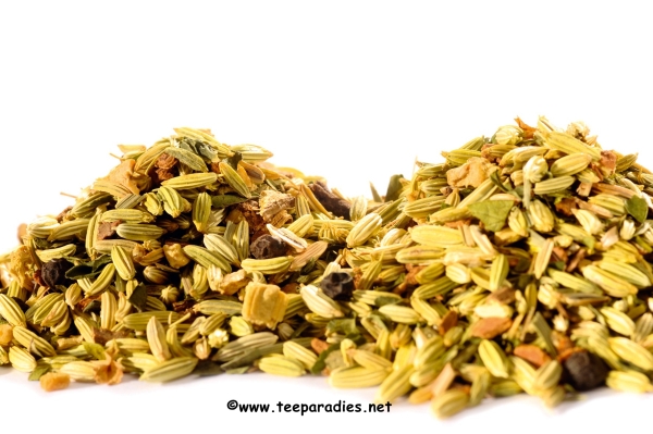 Fenchel*, Zimt*, Ingwer*, Süßholz*, Zitronengras*, Schwarzer Pfeffer*, Pfefferminze*, Gewürznelken*, Petersilie*.* aus kontrolliert biologischem Anbau